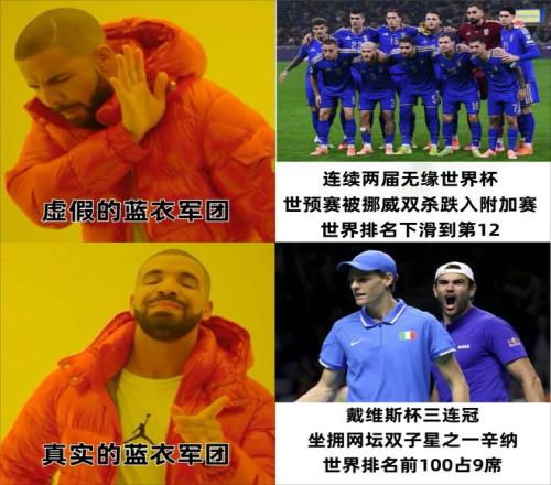 放在20年前,或者說10年前,你能想到意大利選手在各級巡回賽、杯賽上向冠軍發起衝擊,而曾登頂世界之巔的意大利足球男子國家隊卻會連續2屆錯過世界杯,如今又一次跌入附加賽,還要為2026年的名額拚搶一番嗎?