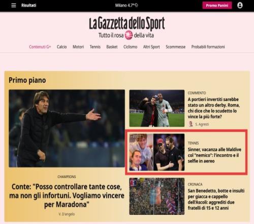 “以前《米蘭體育報》的頭版從來沒有網球報道過,現在無論辛納做什麽,網球每天都會出現在所有報紙上。”他說道。