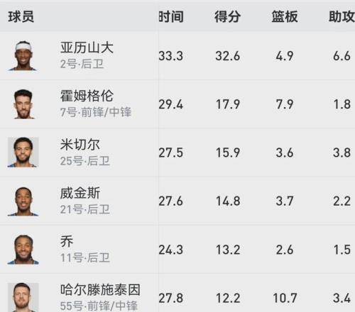 其實雷霆最可怕的地方不在於亞曆山大一個人,而是整體實力,本賽季至今盡管除了他之外就無人再場均得分20+,但有五人場均得分上雙,其中切特場均17.9分7.9板1.8助1.5帽,場均出戰時間不到30分鍾。