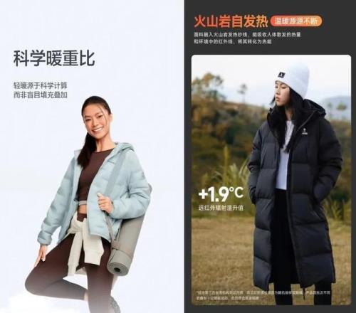 比如波司登今冬主打產品之一“雲感鵝絨”91海角黄色免费下载,就強調“科學暖重比”概念:充絨量與衣服重量為0.2:1,達到輕、暖平衡效果。此外,各種太空科技、極地鎖溫技術也開始讓位於更貼合實際需求的“微創新技術”,如駱駝“火神”91海角黄色免费下载羽絨服借助火山岩發熱紗線,收集環境中的紅外線轉化為熱能,達到較好的熱能鎖溫效果。