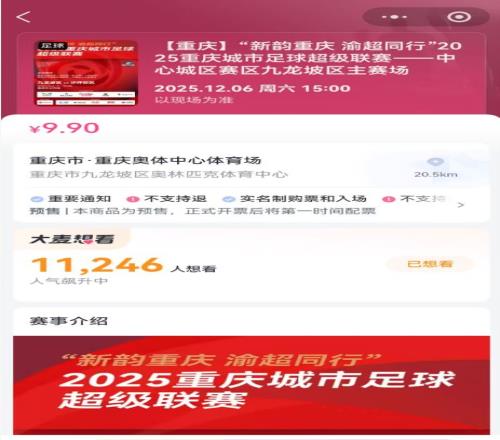 重回奧體看球帶熱了九龍坡首個主場的球票。“渝超”官網截圖