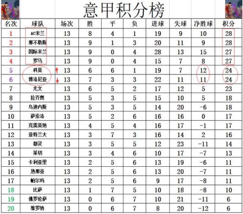 積分榜方麵,AC米蘭,那不勒斯齊頭並進,AC米蘭1個淨勝球的微弱優勢領跑,國米,羅馬1分之差緊隨其後。博洛尼亞今天若是能贏3個球的話,他們就能超過國米殺入前三,隻是他們爆冷輸球後,不僅不能追趕前4,還因少了1個淨勝球,被黑馬科莫躺著超過,跌到第6。