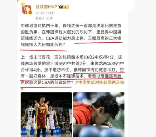 國內籃球解說員付政浩,也是對中國男籃的表現進行了點評,他認為中國男籃與韓國隊的比賽,鋒線是決定比賽勝負的關鍵!中國男籃擁有三大頂級鋒線球員,號稱運動能力最出色,天賦最高,然而,三大鋒線沒有一個表現正常。