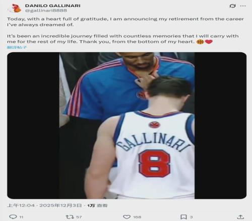 北京時間12月3日淩晨,“意大利炮”達尼羅-加裏納利宣布正式退役,結束21年籃球生涯:“今天,我懷著無比感恩的心情宣布,從我一直以來夢寐以求的職業中退役。這是一段不可思議的旅程,充滿了無數美好的回憶,我會永遠珍藏。”