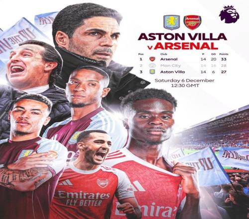英超前14輪過後,阿森納以10勝3平1負積33分的成績高居榜首,領先排名第二的曼城5分,而維拉則積27分排名第三。北京時間周六20:30,阿森納將會做客挑戰維拉。