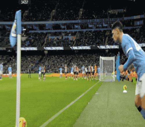 第34分鍾,福登開出角球,格瓦迪奧爾高高躍起,頭槌破門。短短的3分鍾,曼城連進兩球。