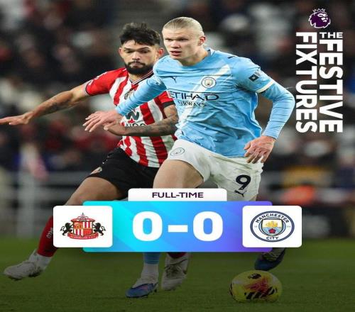 英超第19輪,曼城客場0-0戰平桑德蘭,各項賽事8連勝遭終結。
