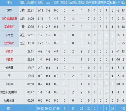 雷霆三分球32中10,命中率隻有約31%,投籃向來是他們的最大軟肋,數據如下: