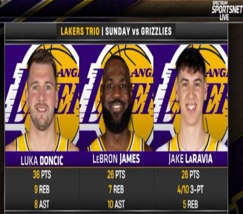 湖人逆轉16分擊敗灰熊,湖人隊三人拿到25+(東契奇36分、詹姆斯26分、拉拉維亞26分),此役後湖人已經重返西部第三,勒布朗-詹姆斯打出他41歲後首個25+10+5,這位41歲的老將又創造了曆史性的時刻。