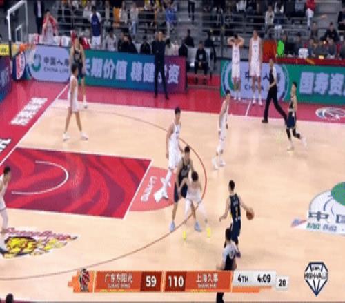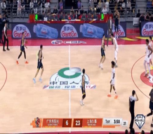 第一節廣東隊上來就被上海的一套內外連線+跑轟反擊直接打懵,第一節進行到還剩3分47秒,廣東隊已經落後上海20分,杜鋒再次準備換人,焦泊喬來到場邊候場。