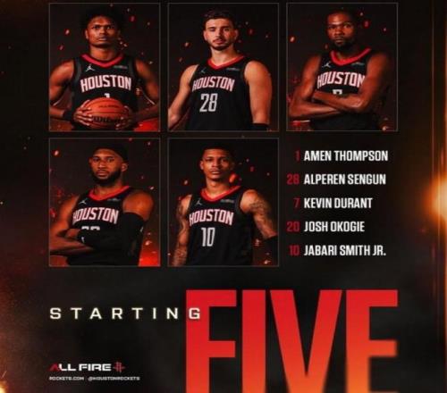 火箭隊本場的首發陣容分別是阿門·湯普森、奧科吉、杜蘭特、小史密斯和申京,和前一場沒有什麽變化。但第二陣容有一些調整,5位球員出戰,分別是後衛謝潑德、戴維森,以及前鋒多利安·芬尼-史密斯、泰特和中鋒卡佩拉。兩套陣容看起來非常齊整。