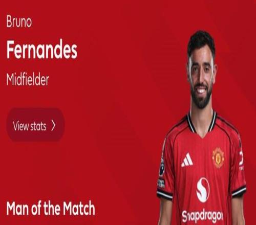 經過英超官網球迷投票,布魯諾-費爾南德斯以38%的得票率力壓隊友多古(34%)當選全場最佳球員。