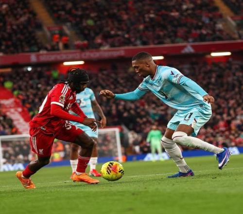 帥位不穩的斯洛特,此役在主場不敢有絲毫怠慢,擺出了球隊最熟悉的4231陣型,首發門將阿利森,凱爾凱茲、範戴克、科納特和弗林蓬構築後防,瓊斯和赫拉芬貝赫搭檔雙後腰,加克波、維爾茨和索博斯洛伊坐鎮中場,單箭頭隻是埃基蒂克。