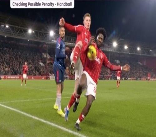 阿森納0比0諾丁漢森林,阿爾特塔對本隊被漏判點球意難平。比賽尾聲,森林後衛艾納在底線疑似用手撈球(圖③),經VAR複核後未判點球。英超裁判公司解釋稱,“球先碰到艾納的肩膀,而且他的手臂也處於自然位置。”阿爾特塔賽後抗議:“這個解釋不對。那是一個明顯的點球。對,球是先擊中他的肩膀,然後他用手把球撈住了,意圖非常明顯。否則我就不會在這裏說了。”森林主帥戴奇直斥塔哥的點球申訴“荒謬”,並表示如果這要是判罰點球,那足球比賽就幹脆別踢了。