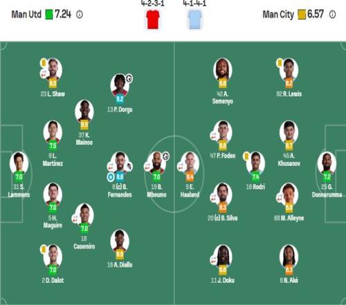 這一戰術意圖極其明確,全場比賽曼聯多次通過長傳製造絕佳機會,其中布魯諾·費爾南德斯和利桑德羅·馬丁內斯都送出過致命的身後球。曼城幾個人是太嫩了,被卡裏克這套來回針對,有點蒙。一方麵是受困於客觀的傷病,另一方麵則暴露出戰術層麵的深層問題。由兩名缺乏經驗的年輕中衛組成的防線,在曼聯堅決的縱向衝擊下漏洞百出。