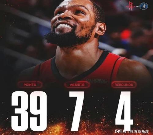 另一邊,火箭隊以110-105險勝森林狼隊,戰績反超湖人隊,升至西部第五。此役,背靠背出戰的杜蘭特展現出了超凡的實力,他亮相40分鍾,投籃18次命中11球,三分球8投6中,高效砍下39分,並貢獻4個籃板、7次助攻、2次搶斷和1次蓋帽,成為的最大功臣。盡管杜蘭特也已經37歲,但在休斯頓,他依然被當作球隊的核心來使用,承擔著巨大的比賽壓力。
