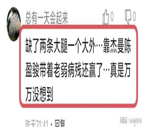 陳盈駿本場的表現,也得到了許多網友的讚揚。“北京隊兩位真大腿——陳盈俊和傑曼。”;“陳盈駿是北京男籃晴雨表!”;“缺了兩條大腿一個大外…靠傑曼陳盈駿帶著老弱病殘還贏了…真是萬萬沒想到”;“這場憑借陳英俊和傑曼的穩定發揮以及全員的努力防守,勉強拿下,獲得了兩天的呼吸權”……