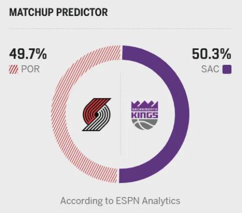 北京時間1月19日,NBA常規賽迎來開拓者與國王的比賽,開拓者昨天戰勝湖人取得兩連勝,目前以21勝22負的戰績排在西部第九,球隊本賽季的整體表現可圈可點,一直穩定在附加賽區域,雖然缺少超級球星但球隊能得分的球員很多,陣容裏有多達7人場均得分上雙,阿夫迪亞的場均數據已經達到全明星級別的26.1分7.1籃板6.9助攻,今天的比賽阿夫迪亞複出,但是格蘭特、霍勒迪、穆雷、羅威缺陣,這也給楊翰森帶來上場機會。國王近期迎來強勁反彈豪取4連勝,不過前期挖坑太大,12勝30負的戰績仍排在西部倒數第二,隨著小薩的回歸,國王的內外線更加均衡,此役國王的基根·穆雷繼續缺戰。賽前ESPN預測國王勝率為50.3%,開拓者勝率為49.7%,兩隊賬麵實力差距不大,將是針尖對麥芒的膠著戰。