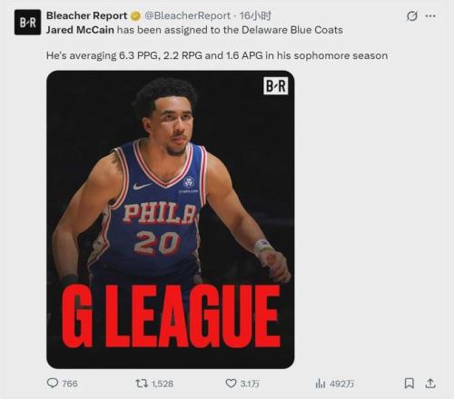 76人官方宣布:將“魔仙哥”賈裏德-麥凱恩下放至發展聯盟的特拉華藍衫隊。上賽季還是76人重點培養對象,這賽季卻被邊緣化:他已經連續五場比賽出戰不足10分鍾,其中有一場被DNP。已有多支球隊致電76人,正式詢價麥凱恩。