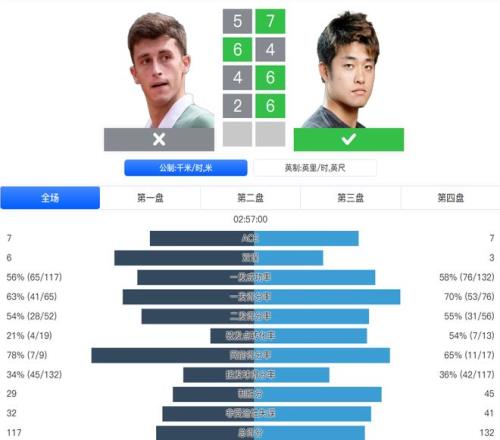 數據雙方不相上下 對手決勝盤表現更好