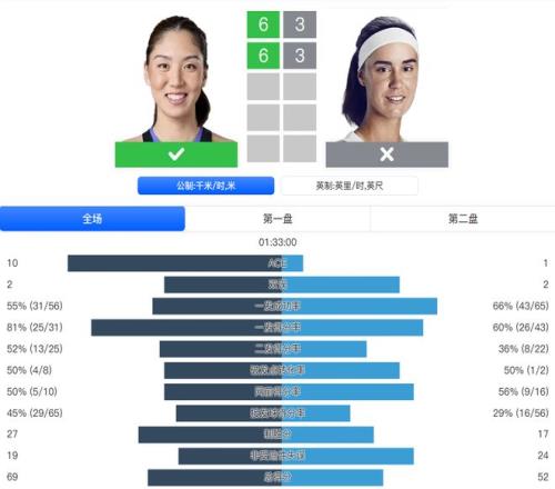 麵對從資格賽打上來的卡利尼娜,王欣瑜此役交出了完美數據:超過8成的一發得分率,4次破發,27個製勝分。比賽過程一路順風,僅耗時1小時33分鍾便拿下勝利。下一輪她將和前法網女單冠軍奧斯塔彭科隔網相對。
