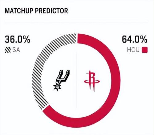 本賽季兩隊首次交鋒,馬刺在主場以11分之差戰勝火箭;但近6次交手,火箭取得了4勝2負的戰績,占據一定優勢。賽前,美媒ESPN對本場比賽進行了勝率預測,火箭隊勝率依舊高達64.0%,占據絕對上風,馬刺勝率則僅有36.0%,意外不被看好。