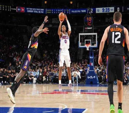 太陽過去兩次連續客場戰勝尼克斯與籃網收獲2連勝,76人上一次主場113-104戰勝步行者。本場太陽迎來傑倫-格林複出,76人缺少恩比德與喬治兩位核心。首節開局太陽2-8落後,太陽連追4分,烏布雷三分命中,太陽連追3分。雙方隨後持續纏鬥至太陽17-19落後,烏布雷再中三分,太陽連追4分。76人一波8-0攻勢擴大9分優勢,太陽一波6-0攻勢追分,首節結束太陽27-30落後76人。首節太陽21中8,其中三分6中0,布克6中2得到9分;76人24中11,其中三分13中5,埃奇庫姆7中4得到10分與烏布雷3記三分11分,馬克西5中0得到0分。