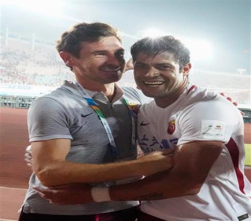 2017年9月30日,上海上港隊球員胡爾克(右)與主教練博阿斯擁抱慶祝。 當日,在2017年足協杯半決賽第二回合比賽中,上海上港隊客場以4比1戰勝廣州恒大隊,最終上海上港隊以6比2的總比分晉級決賽。 新華社記者劉大偉攝