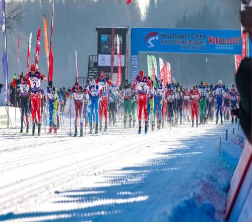 (第24屆中國長春淨月潭瓦薩國際滑雪節現場,鳴槍後選手共同出發)