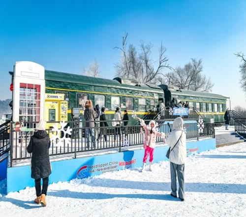 (遊客打卡淨月潭景區雪國列車)