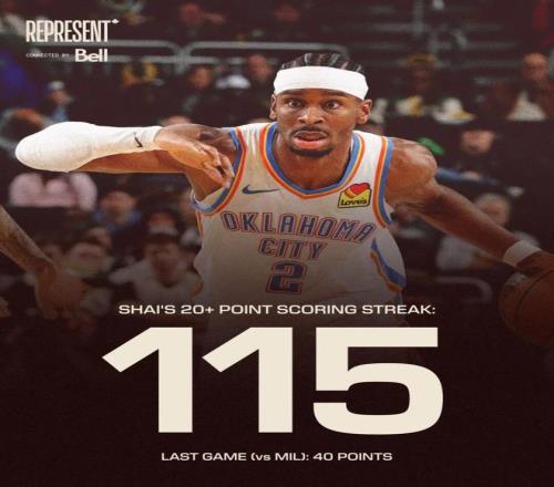 一個最直接的證明,在本場比賽過後,亞曆山大已經連續115場比賽拿下20+,距離超越曆史第一的張伯倫(126場)隻需要12場。