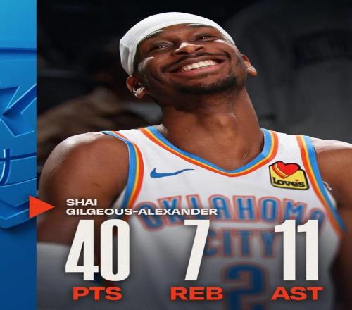 全場出戰33分鍾,投籃19中16,三分2中2,罰球7中6,拿下40分7籃板11助攻,單場真實命中率高達90.6%。