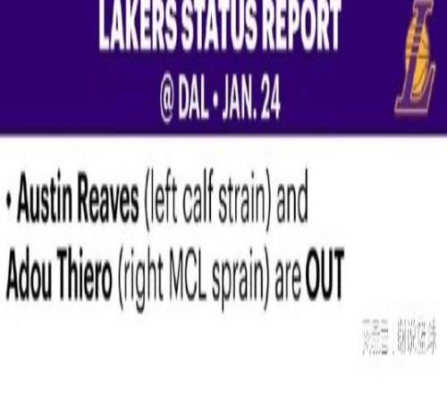 如今湖人官方更新傷病報告,客場對陣獨行俠,依然隻有裏夫斯和蒂耶羅,還留在傷病名單當中,其他球員全部可以出戰。當然湖人主帥雷迪克,在接受采訪時已經透露,如果裏夫斯恢複情況良好,他有望在這波連續客場征程中複出。