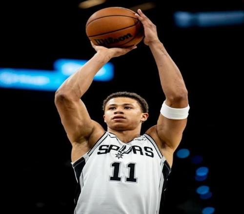 而且,他的防守潛力,早在NCAA時期,就已經展露無遺,能夠從1號位防守到4號位,橫移速度不遜色於後衛,防守的預判意識也是極佳,這也是得到了所有球探的認可。不僅如此,他在大學時期,三分命中率保持在了37.1%,所以攻防兩端,他的能力和潛力都是有的,完全符合小球時代的要求,有成為頂級3D側翼的潛質,這是馬刺隊選中他的重要原因。