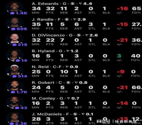 再說說今天全場最閃亮的“奇葩之星”——華子。20投13中,罰球3中2,砍下32分11板2助,可這失誤數也高達8次,一個後衛交出這樣的數據,讓人又愛又恨。不過話說回來,輸球這事兒也不能全怪華子,他那群隊友們也得好好反思反思。森林狼這問題到底出在哪兒呢?上賽季還被吹噓這套陣容潛力無限,畢竟連續兩年都殺進了西決,可現在呢,眼看著又要走上重建的“老路”了。