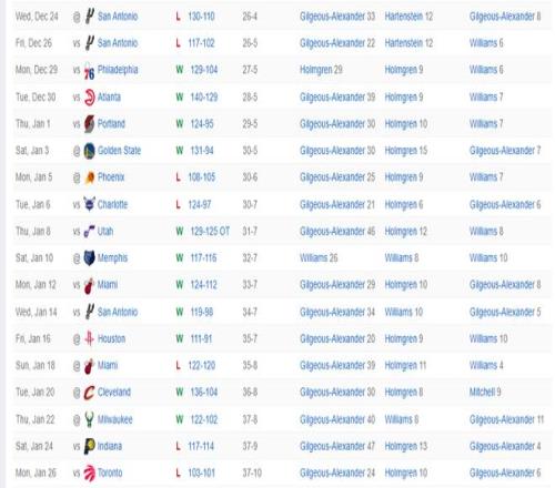 亞曆山大本賽季場均33.4分鍾,拿到32.1分4.4籃板6.2助攻1.3搶斷0.8蓋帽,命中率55.9%,三分39.4%,場均9.2個罰球,亞曆山大的打法一直都不夠討喜甚至讓不少美媒厭惡。