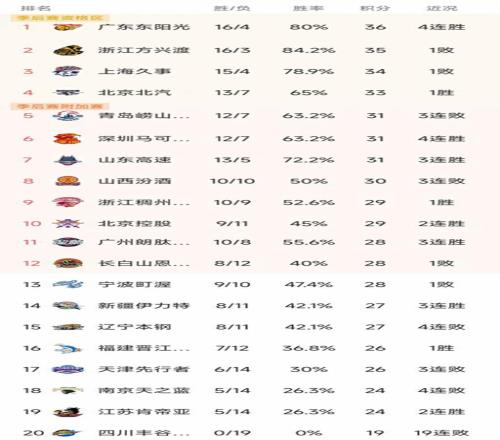 CBA最新積分榜:廣東4連勝升第1,北京1分險勝,山西3連敗排第8