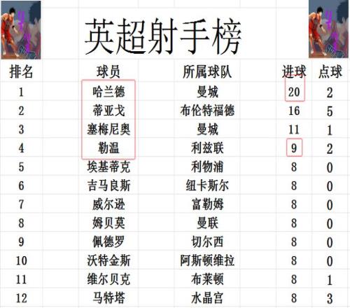 射手榜方麵,哈蘭德20球穩居榜首,蒂亞戈16球緊隨其後,塞梅尼奧11球排在第3。勒溫今天沒能進球,還是9球排在第4,佩德羅,姆貝莫等人8球剛好擠入前十。