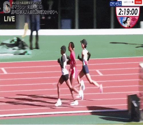 進入體育場,比賽來到最後200米,矢田美久還在試圖加速,看能否有一線希望反超對手,隻是沃克奈什·埃德薩和貝達圖·希爾帕沒給她這樣的機會,提速甩開矢田。從彎道進入直道,比賽時間已過去2:19:48,沃克奈什·埃德薩還警覺著回頭,生怕矢田美久再次反超。