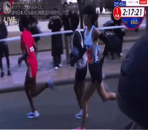 過30公裏,矢田美久的用時為1:39:21,屬於全馬的真正挑戰也開始了。那時,日本其他選手陸續掉隊,矢田成為日本選手和非洲選手抗爭的獨苗。