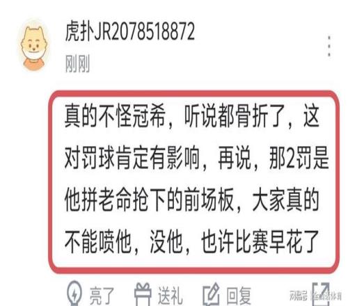 賽後,許多球迷對吳冠希的表現,給予了充分肯定,紛紛表示“不賴冠希,今天燃盡了,他不拚前板也沒那兩罰。”;“冠希最近幾場都非常不錯了,值得鼓勵。”;“真的不怪冠希,聽說都骨裂了,這對罰球肯定有影響,再說,那2罰是他拚老命搶下的前場板,大家真的不能噴他,沒他,也許比賽早花了!”……