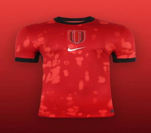 新賽季成都蓉城主場球衣以城市夜色為靈感,整體以紅色為主,輔以黑色細節點綴,將流動的光影轉化為遍布全身的虛化光斑圖案,營造出動態視覺效果。