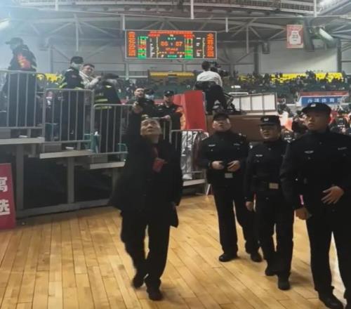 就在大家以為這比賽熱熱鬧鬧地結束,看台上的山西球迷還有更熱鬧的舉動:他們衝著北京男籃的球員吐口水。