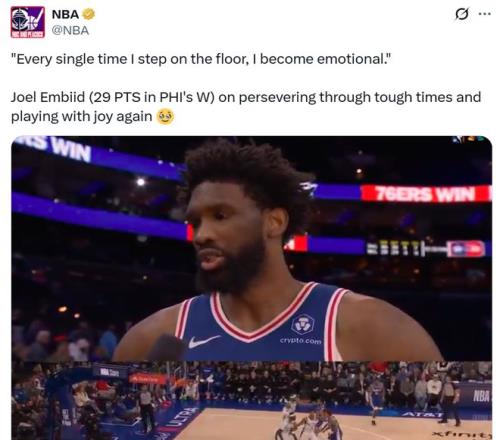 賽後恩比德感慨道:“每次踏上球場,我都感慨萬千激動不已,因為過去幾年對我,對我的家人來說都非常艱難,現在終於穩定下來了。”