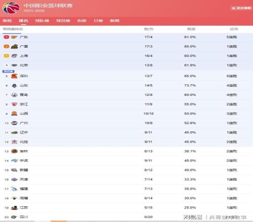 CBA排名大變!廣東登頂,北京斷崖下滑,廣州第10遼寧難保季後賽_24直播網