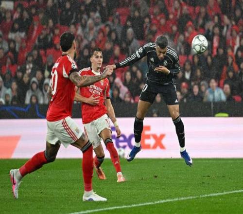 但是此後,進攻人數占優的皇馬也開始打反擊,第30分鍾,皇馬4人壓在對手的禁區內,阿森西奧傳中準確找到姆巴佩,後者頭球砸開本菲卡的大門。皇馬1-0!