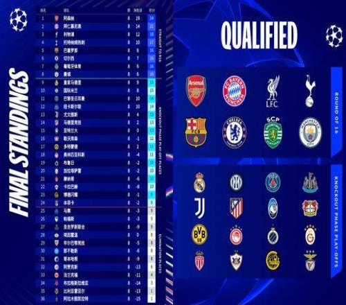 此役過後,本賽季歐冠出線格局正式明朗,16強席位確定8隊:阿森納、拜仁慕尼黑、利物浦、托特納姆熱刺、巴塞羅那、切爾西、葡萄牙體育、曼城。
