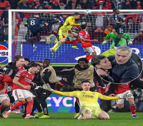緊接著下半場補時第8分鍾,比賽神奇一幕來了,本菲卡獲得任意球機會,穆裏尼奧示意門將直接進對方禁區,奧爾斯內斯將球開出,特魯賓躍起頭球破門,4-2終結勝負懸念!