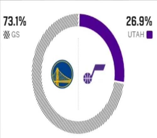 這是兩隊本賽季的第三次交手,前兩次交鋒均以勇士大勝告終,優勢非常明顯。賽前,美媒ESPN對本場比賽進行了勝率預測,勇士隊勝率高達73.1%,一騎絕塵,爵士隊勝率則僅有26.9% ,還是不被外界看好。