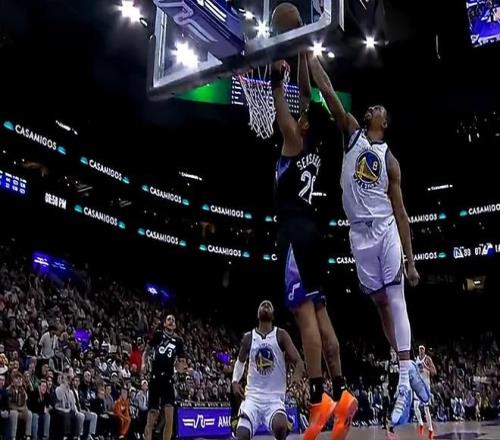 易邊再戰,馬爾卡寧接球衝擊內線,對抗追夢滯空雙手暴力隔扣。庫裏連續三分命中和格林擊掌慶祝,勇士已領先爵士近20分。梅爾頓封蓋森薩博裁判延遲響哨,勇士挑戰失敗裁判維持原判,科利爾壓哨上籃打進,爵士轟出一波27-10追到個位數分差。
